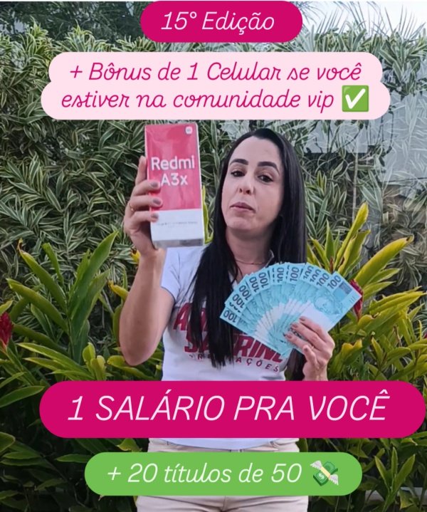 Um super bônus para quem ganhar o Salário, se o ganhador(a) estiver na comunidade vip leva 1 salário e o bônus 1 celular Redmi A3.