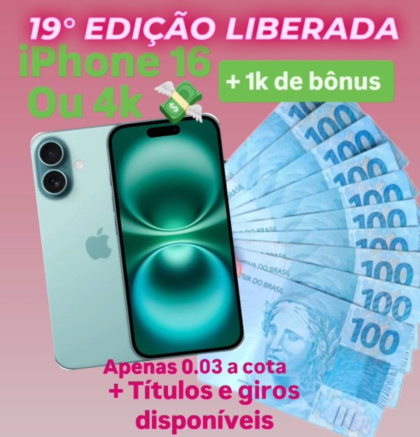 Mais uma oportunidade de 1 celular novo 📱ou 4 Mil Reais na conta e se o ganhador estiver na comunidade vip ✅ leva + 1000 Mil Reais💸 de bônus.